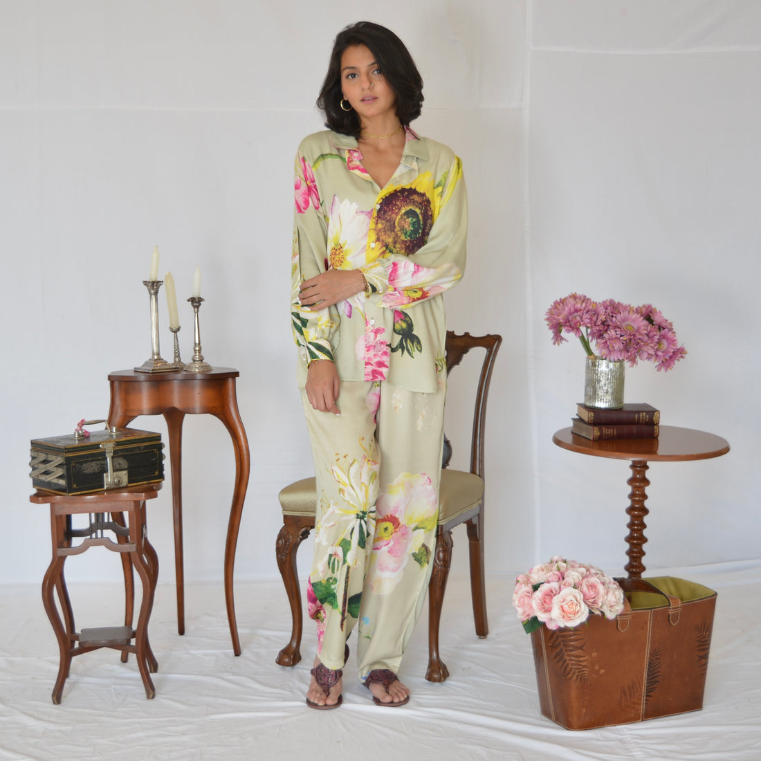Introducing the Ella co-ord set in Green. This ensemble features a shirt with puffed full...