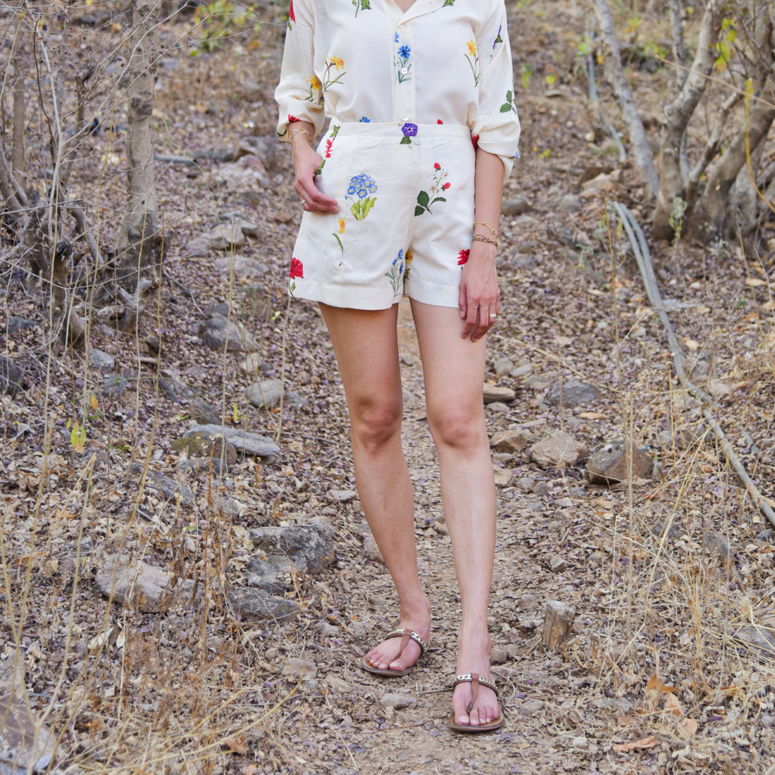 Introducing our delightful cream floral printed shorts. The high-waisted shorts, this set exudes effortless sophistication....