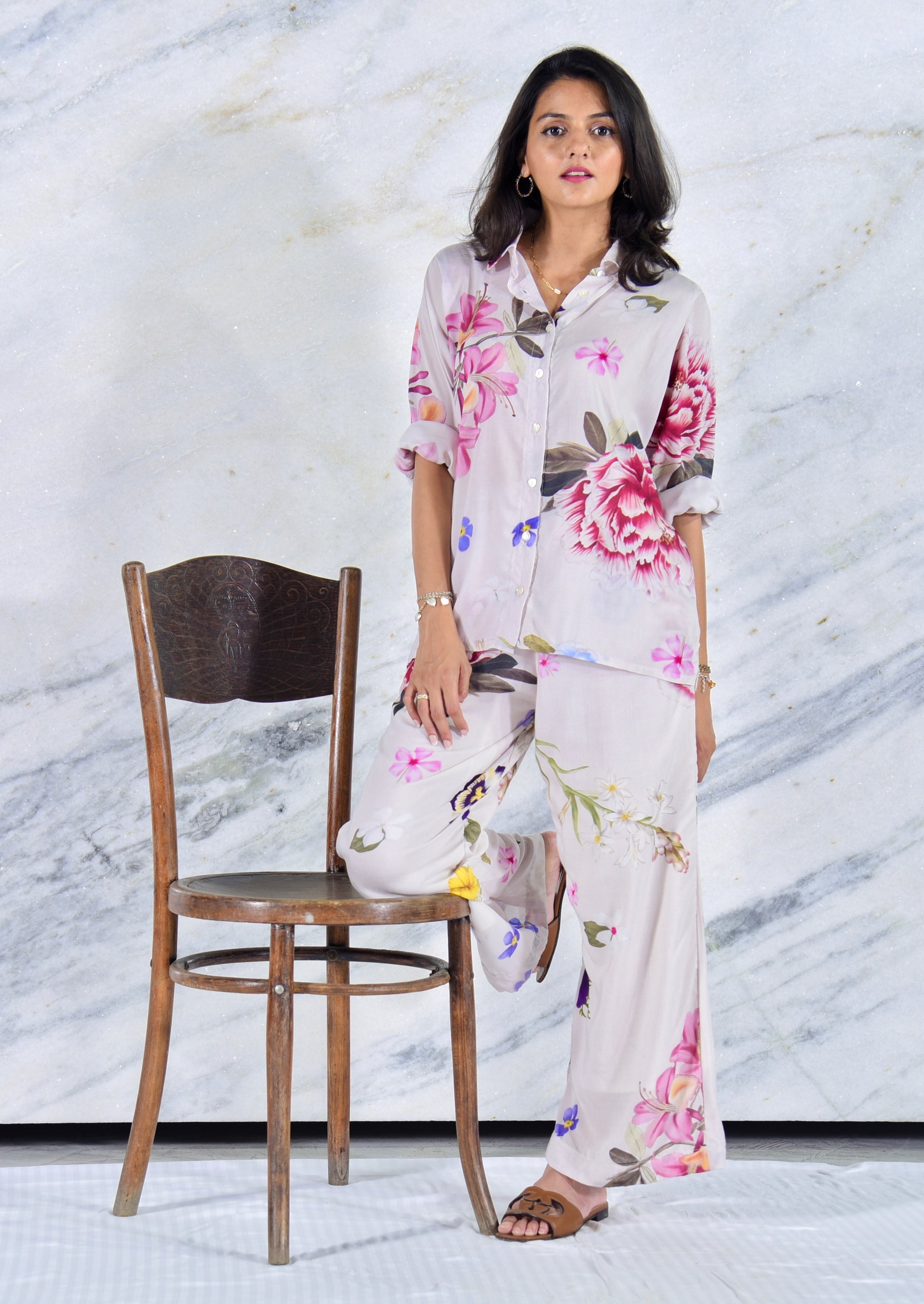 This Creamish-Pink Floral Pant is designed for comfort and everyday style. The high-waisted, wide leg pants create a timeless silhouette, flattering every figure.