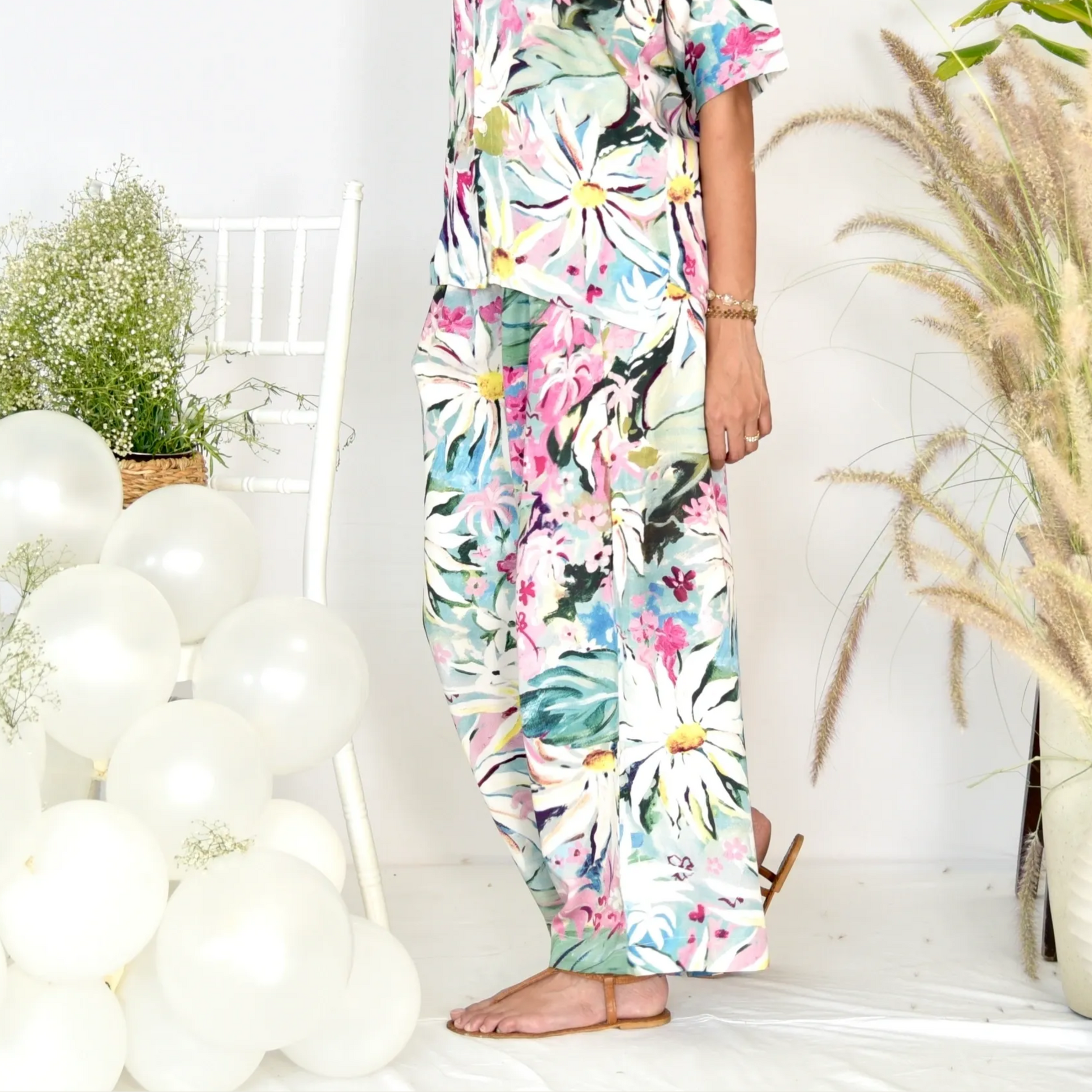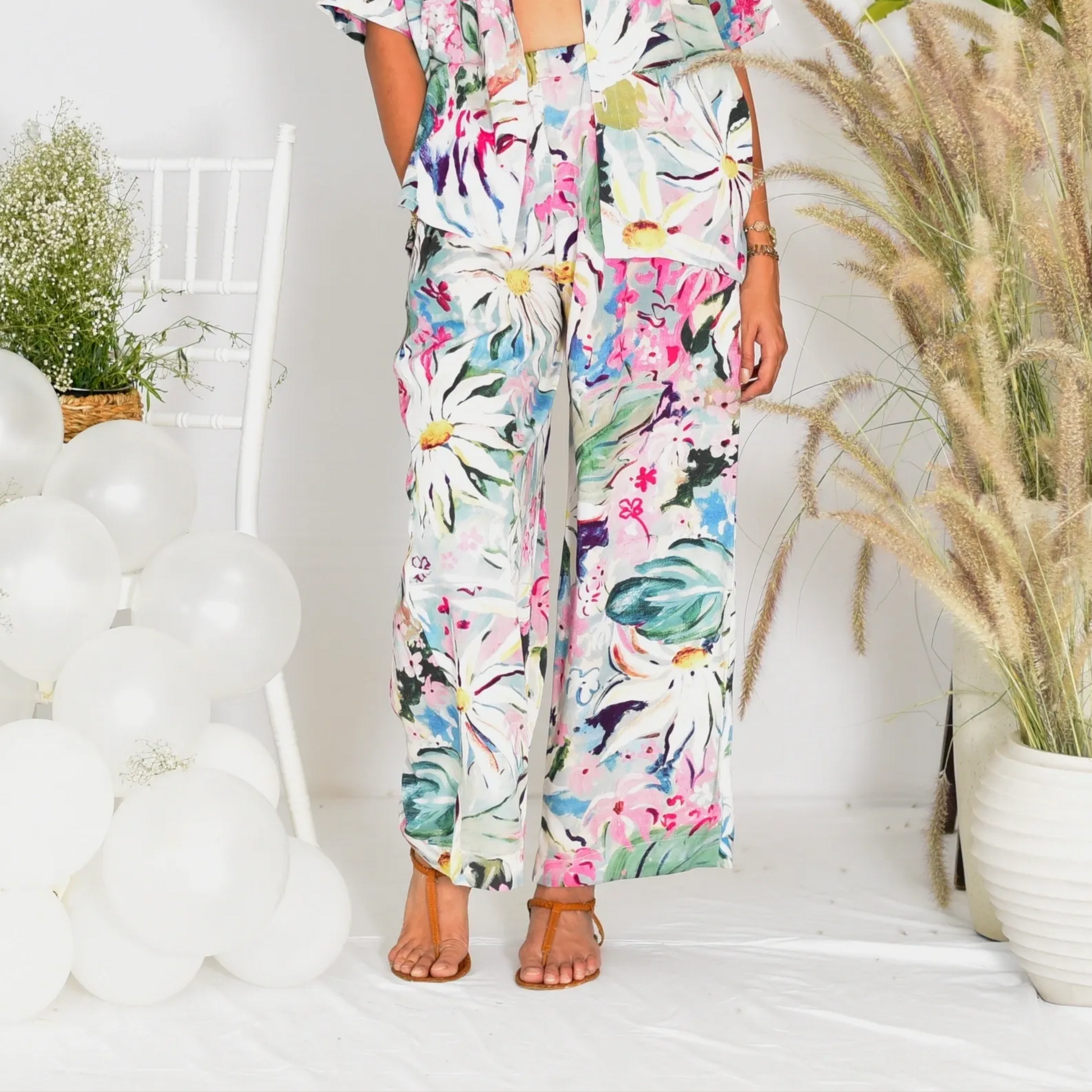 Presenting our abstract pants. The pants are elastic high-waisted, straight-leg pants, this set offers a timeless silhouette that exudes sophistication.