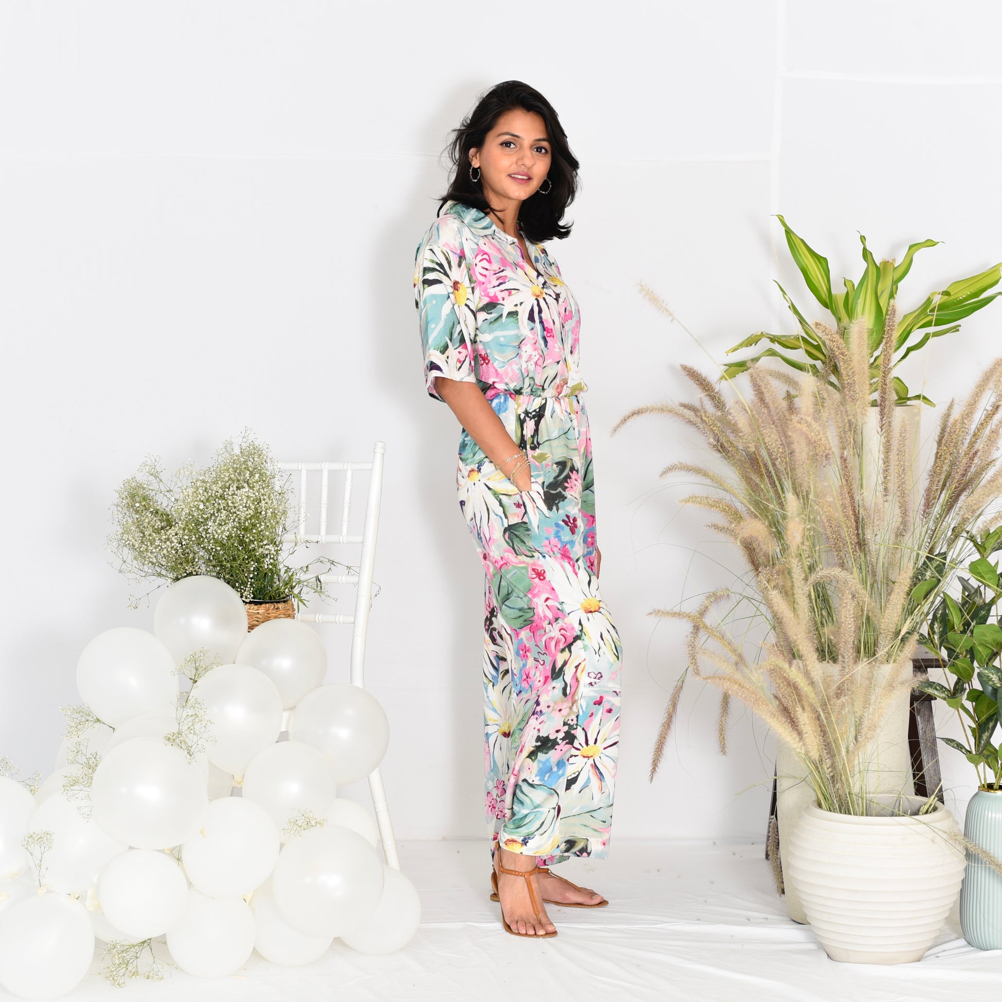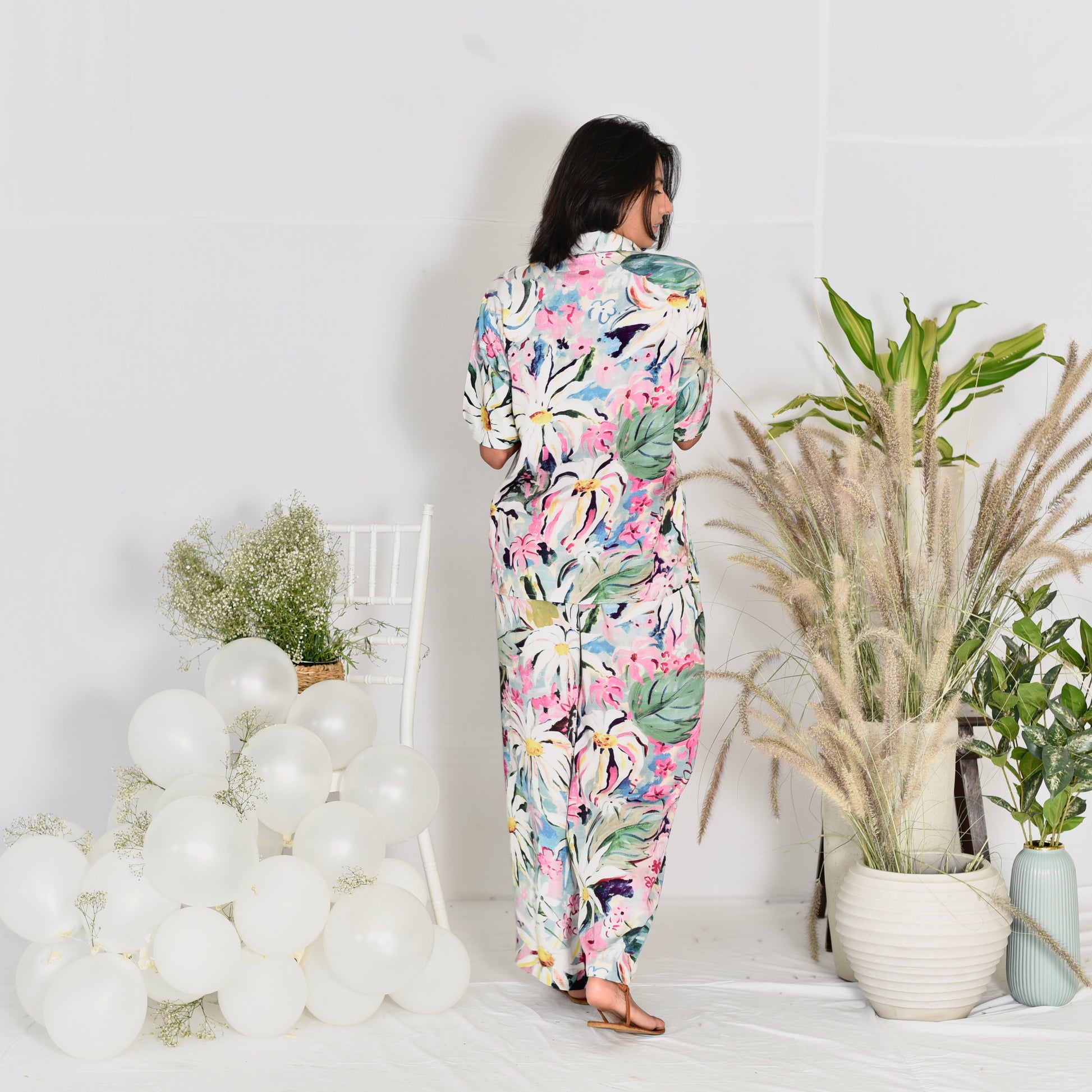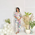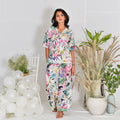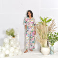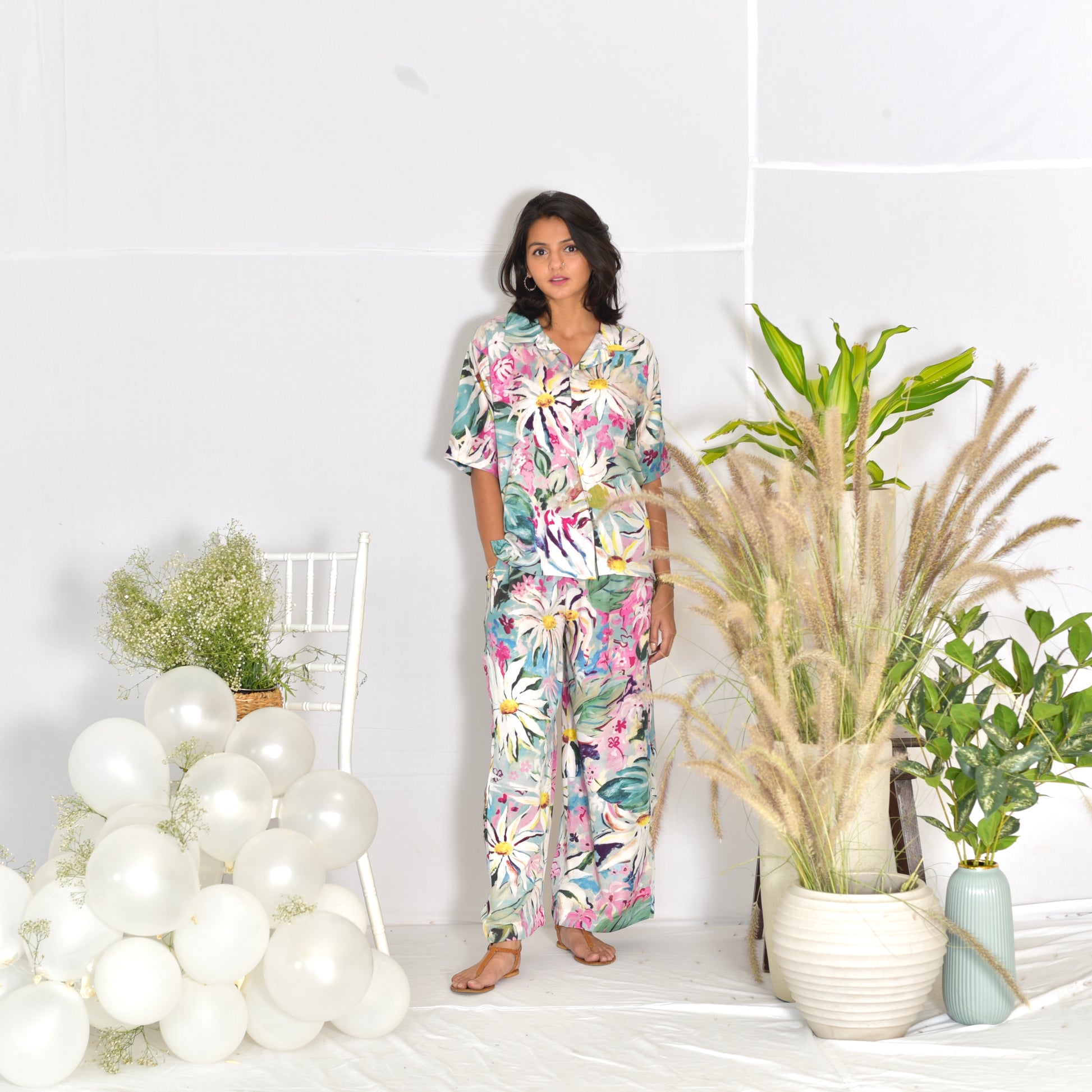 Presenting our abstract co-ord set. The shirt boasts a trendy half sleeves boxy style, adding a modern touch to your ensemble. Delicate mother of pearl buttons elevate the outfit with a subtle hint of charm. Paired with elastic high-waisted, straight-leg pants, this set offers a timeless silhouette that exudes sophistication. Enjoy the perfect balance of comfort and fashion with this thoughtfully designed co-ord set. The breathable fabric and relaxed fit make it ideal for all-day wear. Oodeypore is the perfect choice for any occasion, offering a blend of style, comfort, and elegance. Whether you're looking for a summer co-ord set, printed co-ord set, or a floral co-ord set, this ensemble has it all.