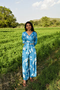 The Miyako Pants are stunning blue printed pants designed to offer both comfort and style. These high-waisted pants boast a loose fit below the hips, making them a perfect blend of elegance and ease. Crafted from luxurious modal satin fabric, they are ideal for any occasion.