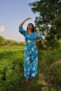 Introducing the Miyako Set, a blue printed co-ord set designed to make a statement. The high-waisted pants feature a loose fit below the hips, combining comfort and style. Accompanying the pants is a versatile wrap-style top that can be creatively styled in various ways, making this set chic and functional. Ideal for those seeking stylish and comfortable summer dresses for women, the Miyako Set offers a perfect blend of a casual cotton dress and a trendy co-ord set, making it an essential addition to your wardrobe. Miyako Set, the perfect airport look co-ord set for women who value both elegance and ease. This set is designed to keep you looking chic while ensuring you stay comfortable during your travels. Upgrade your travel wardrobe with the Miyako Set, the ultimate airport look for women. Browse our collection at Oodeypoore and discover why co-ord set is a must-have for every stylish traveler. Experience the perfect blend of comfort and elegance with the Miyako Set today.