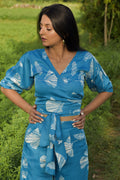 The Miyako Top is a chic blue printed top that brings versatility and style to your wardrobe. This wrap-style top can be creatively styled in various ways, allowing you to express your individuality with every wear. Crafted from luxurious modal satin fabric, it adds a touch of elegance to any ensemble.